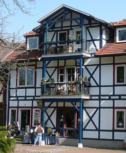 direkt am Kurpark (blaues Fachwerkhaus in der Spazierzone)